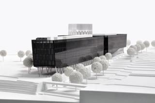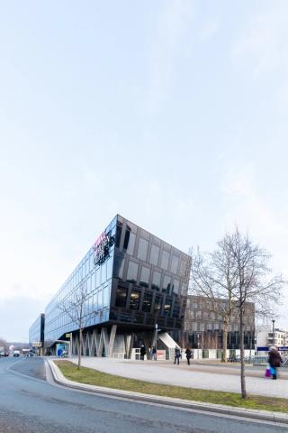 A true exclamation-point! The headquarter of the international Funke Media Group defines a coherent urban-design ensemble, which, like a well-proportioned body, is articulated as a consistent whole.