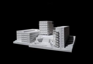 A five-story building on the west side and an eight-story block building provide the frame for this urban center while an arcade alongside the block building leads to the mobility hub which, with three basement and two upper floors, is gently embedded in the sloping terrain. Efficient parking organization and a rich offer of accompanying facilities define a modern mobility solution for the quarter. Moreover, the use concept facilitates intergenerational communion: Different apartment types adaptively cater to diverse lifestyles and needs. In particular, the concept of communal living, which aims to enable aging in the community setting, plays a central role—encouraging a life of mutual support and strengthening social exchange between generations. Flexibly organizable residential modules offer room for classical family apartments as well as for new residential types in which secluded private spaces merge into open community areas, as for example in the access balconies.