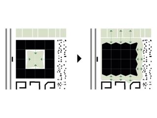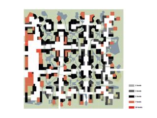 All other aspects of the neighborhood—typology, density, granularity, shape and precise array of the open spaces—may vary from one part of the puzzle to the next. What this results in is a small-scale collage of heterogeneous spatial situations which always also respond to their respective surroundings. Greater building heights alongside streets or rail tracks provide noise protection, and by positioning parking garages on the edge of the center and the city, whole units can, if requested, be kept entirely car-free. To facilitate as much public life as possible, all buildings have a four-meter-high ground floor area to accommodate commercial, cultural, and social establishments. Generous ceiling heights on the first two upper floors create use-neutral, multi-purpose spaces of a special quality. The standard residential units on the other upper floors have compact floor plans and can—again in line with the design objective of more communal space—be expanded with workshops, eat-in kitchens, offices, or guest bedrooms on the ground floor. Outstanding—that was also the opinion of the jury: “The design pursues in a radical manner a twofold approach, which clearly distinguishes it from all other designs. On the one side, it is a radical reduction of net building land to maximize public areas and circulation spaces. On the other, it is an intensive exploration of the idea of modular urban design.”