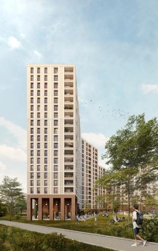 Als stufenweise ansteigende Kaskade von Terrassen, Gärten und belebten Freiflächen kehrt das Wohnhochhaus am Nordbahnareal zudem seinen ausgeprägten Naturbezug hervor – im Zentrum dieses Konzepts steht auch das forcierte Zusammenwachsen von Straße und Park. Als Nahtstelle zur Stadt finden sich Gewerbe- und Gastronomieflächen dementsprechend an den Ecken und Enden des Baukörpers, wodurch ein beidseitig durchlässiges, fruchtbares Begegnungsfeld entsteht. Die besten Voraussetzungen also, um Wurzeln zu schlagen – um gemeinsam gen Himmel zu wachsen!