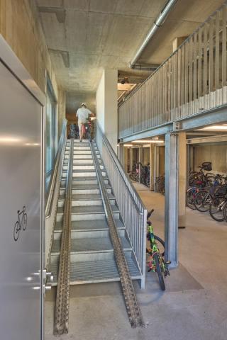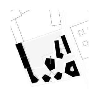 Five heterogeneous built volumes add up into a vital ensemble, which, differentiated as it is, will also be able in the future to adaptively respond to its local surroundings between urban integration and rural idyll. Despite their differences in appearance, the buildings are unmistakably related and also share some architectural traits. So, for example, they are all accessed over a footbridgeโwhether it is an access balcony or an overpass across a pedestrian path, or a network of interior circulation paths.
