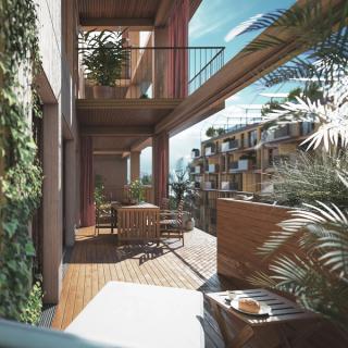 In creating gender-sensitive and everyday-usable-residential quality, the project, planned as an accommodable quarter, is informed by three core ideas: First, the design provides for a reduced building depth, so that the more stretched-out, yet compact residential units each get a larger façade, which, on the inside, translates into the possibility of partitioning off a flexible-use extra room. Second, the balconies in the Red Emma estate are built into fully functional green open-air spaces which, with windbreak panels and planter troughs, are an ideal outdoor extension of the own four walls. Third, barrier-free accessible areas will be created on the ground-floor level, which, with a mix of cultural, social, and commercial offers, importantly contributes to urban neighborly relations.