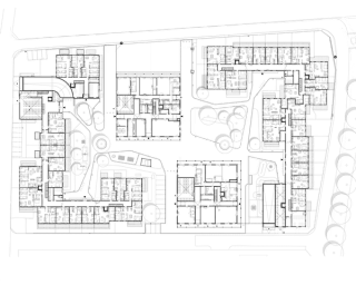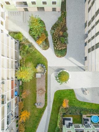 Permeable and open for future extensions, the complex is on par with the old center, expanding the infrastructure it offers and opening up possibilities of mutual exchange. In addition, the residential quarter in the district of Tulln, which fully commits to the idea of sustainability (with solar system, heat pumps, and energy-efficient building layouts), also takes up design element of the existing rural center: on the outside, the farmstead-like array of contiguous built volumes presents itself as a compound of individual buildings which also provide for increasing privacy, the closer you get to the individual occupantโs areas. Block buildings with apartments facing in several directions alternate with atrium houses with an internal arbor access.
