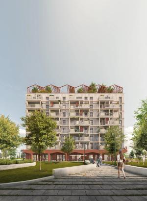 Three pentagonal buildings are grouped around a heart-like inner square—a vital, vibrant residential quarter emerges! The urban design proposal is understood as a prototypical quarter-building block that contributes to a coherent built ensemble and creates a varied and livable urban space.